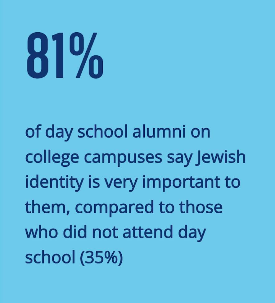 The second piece of news we’re excited to share, although it’s no surprise to us, is that Jewish day school alumni feel stronger connections to their Jewish identities. In fact, the 2025 Prizmah report found that Day school alumni maintain “greater participation in Jewish life on campus during their college years.” The Prizmah findings also suggest that Jewish day school education is a strong contributor to building a life grounded in Jewish values through adulthood.
